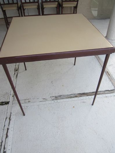 Vintage Wood Leather Top Card Table With 4 Folding Chairs Etsy